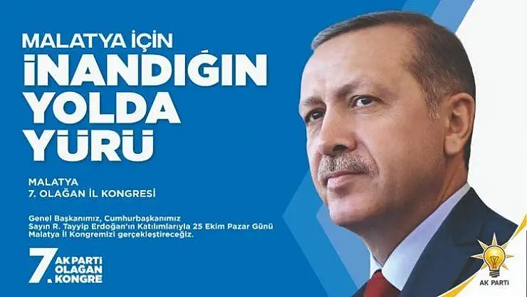 Malatya AK Parti 7.Olağan İl Kongresine katılmak üzere Cumhurbaşkanı Recep Tayyip Erdoğan Malatya'ya geleceği açıklandı.
