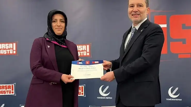 Malatya'da yaptığı çalışmalarla göz dolduran Yeniden Refah Partisi İl Kadın Kolları Başkanı Hamide Koşar, Genelbaşkan Dr. Fatih Erbakan tarafından ödüllendirildi.