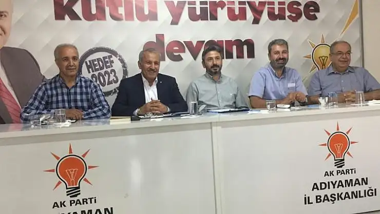 AK Parti Malatya Milletvekili ve Adıyaman Koordinasyon sorumlusu Mustafa Şahin ise "Teşkilat çalışmalarımıza katkı sağlamak amacıyla Adıyaman, Şanlıurfa il koordinatörlüğüne atandık. Bizde bugün il başkanımız ile özellikle teşkilatlarımızla tanışalım. Siyasi partilerimizin özellikle olmazsa olmazlarından olan 3 yılda bir yapılan teşkilatlarımız tarafından kongre süreci başlamış durumdadır. Özellikle sayın genel başkanımız kurucu genel başkanımız cumhurbaşkanımızın şuanda yapmış olduğu açıklama üzerine özellikle teşkilat çalışmalarımızı sürdürmekteyiz. Ak partinin kuruluş felsefesinde de kuruluşundan bugüne kadar da yapmış olduğumuz çalışmalarda teşkilatlara gereken hassasiyeti azami noktada gösteren bir kuruluşuz kurumuz. Ben bu hareketi ben hiçbir zaman için salt bir siyasi düşüncelerle siyasi bir parti gibi görmedim ve düşünmedik. Bu Türkiye’de bugüne kadar özellikle milletin kendisi tarafından kurmuş olduğu bu halkın kurmuş olduğu yetiştirip büyümüş olduğu 15 yılda iktidara taşımış olduğu seçimlerde birinci parti olarak destek vermiş olduğu bir hareketiz" dedi.