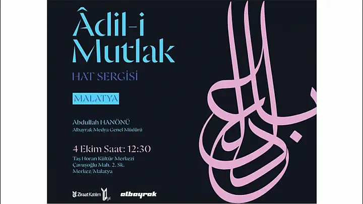 Malatya Kültür Yolu Festivali programı çerçevesinde, 'dil-i Mutlak' hat sergisi 4 Ekim 2025'te Taşhoran Kültür ve Sanat Merkezi'nde sanatseverlerle buluşacak. Sergi, adalet kavramını hattatların kaleminden, geleneksel ve modern tekniklerle yorumlanmış eserlerle izleyicilere sunmayı amaçlıyor. Etkinlik, ücretsiz olarak ziyaret edilebilecek.