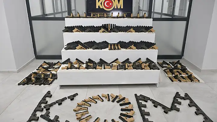 Valilikten yapılan açıklamada, 'Adıyaman KOM Şube ve İstihbarat Şube Müdürlüklerimizce yapılan ortak çalışmalar neticesinde; kurusıkı olarak tabir edilen ses-gaz tabancalarında bir takım değişiklikler yapılarak ateşli silah haline getirilecek şekilde tasarlanmış bin adet tabanca S. Y. isimli şahsın işyerinde yapılan aramada ele geçirilmiştir.' denildi.