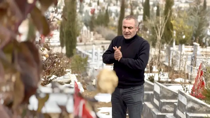 MALATYA (MHA) - Kahramanmaraş merkezli 6 Şubat depremlerinde Malatya'da Yıkılan Kasapoğlu Apartmanı'nda eşi ve dört çocuğunu kaybeden Turgut Karaaslan, fırsat buldukça geldiği mezarlıkta çocuklarının sevdiği çikolataları mezar başına bırakıyor, mezar taşlarını öperek onlarla konuşuyor.