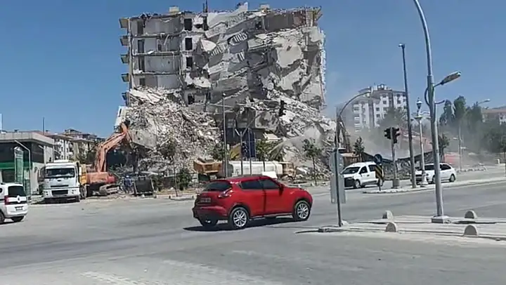 Malatya'da 6 Şubat depreminin ardından kent genelinde yeni binalar yükselirken, mahkeme süreçleri tamamlanan orta hasarlı yapıların da yıkımları sürüyor.