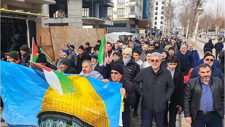 Kudüs Kardeşlik Platformu öncülüğünde düzenlenen yürüyüşte yüzlerce kişi Filistin bayraklarıyla Kernek Camii'ne yürüyerek işgale karşı tepkisini dile getirdi.