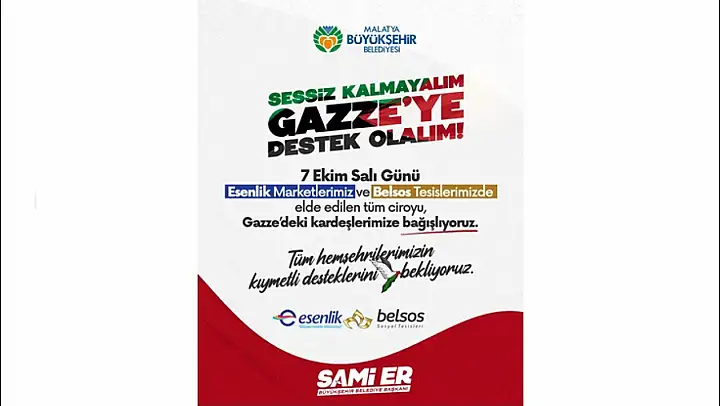 Malatya Büyükşehir Belediye Başkanı Sami Er'in, bir maaşını bağışlayarak 7 Ekim 2025 tarihinde başlattığı 'Gazze'ye Yardım Kampanyası' büyük bir gönül seferberliğiyle 7 Kasım 2025 tarihinde tamamlandı.
