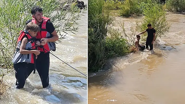 Bir süre sonra akıntıya kapılan çocuklardan biri kendi çabalarıyla kıyıya ulaşırken, ihbar üzerine bölgeye sevk edilen ekipler diğer çocuğu sağ olarak sudan çıkardı.