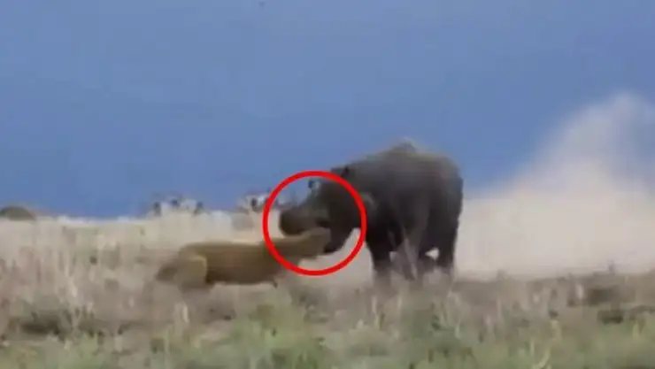 Aslanı kafasından yakalayan su aygırı!