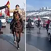Banazılılar bu açıklamanın ardından, arabalar ve onlara eşlik eden atlarla birlikte konvoy oluşturup Türk bayrağı salladılar.