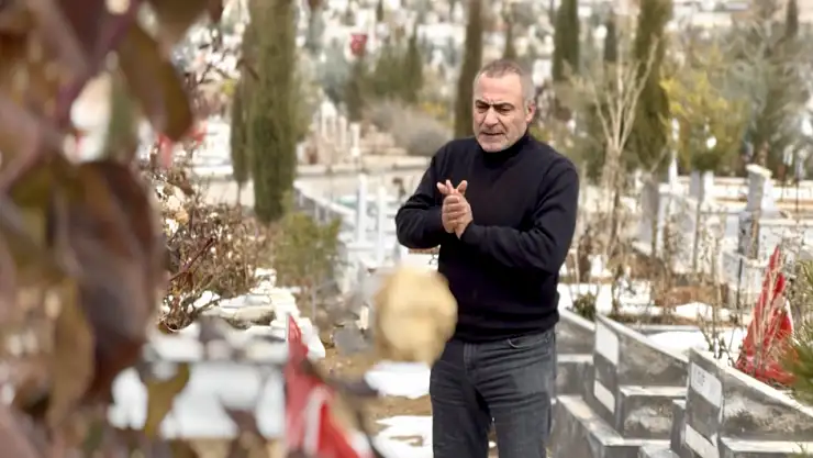 MALATYA (MHA) - Kahramanmaraş merkezli 6 Şubat depremlerinde Malatya’da Yıkılan Kasapoğlu Apartmanı’nda eşi ve dört çocuğunu kaybeden Turgut Karaaslan, fırsat buldukça geldiği mezarlıkta çocuklarının sevdiği çikolataları mezar başına bırakıyor, mezar taşlarını öperek onlarla konuşuyor.
