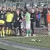 Tribünlerden sahaya atılan scooterın yardımcı hakem Hakan Başkurt’a isabet ettiği anlar ise bir taraftarın cep telefonu kamerasına yansıdı.