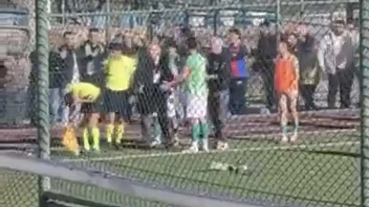 Kaşından yaralandığı öğrenilen yan hakeme ilk müdahaleyi sağlık görevlileri yaparken orta hakem ise yaşanan olay nedeniyle karşılaşmayı tatil etti.