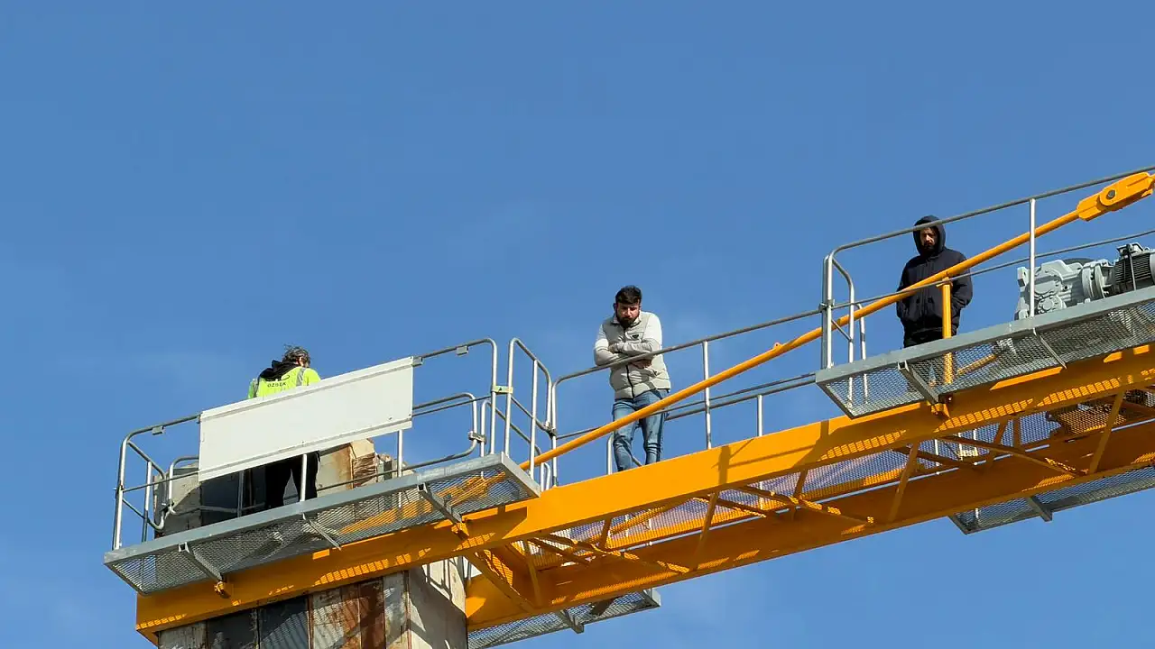 MALATYA (MHA) - Malatya’nın Doğanşehir ilçesinde rezerv alanı inşaat sahasında çalışan 3 işçi, maaşlarını alamadıklarını ileri sürerek kule vincin üzerine çıkarak seslerini duyurmaya çalıştı.