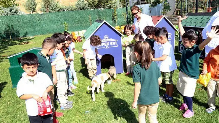 Özel bir kolejde eğitim gören minikler 4 Ekim Hayvanları Koruma Günü etkinlikleri kapsamında 5 köpek ve bir kediyi sahiplendi. Elazığ Belediyesi ekipleri tarafından okul bahçesine yerleştirilen yeni yuvalarında yaşamaya başlayan can dostu 5 köpek ve bir kedi, miniklerin yoğun sevgisiyle karşılandı. Küçük dostlarıyla doyasıya oyunlar oynayan minikler, hayvanlara mama vermeyi de ihmal etmedi.