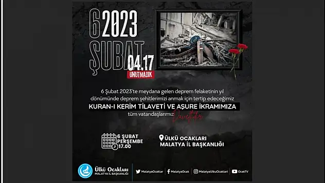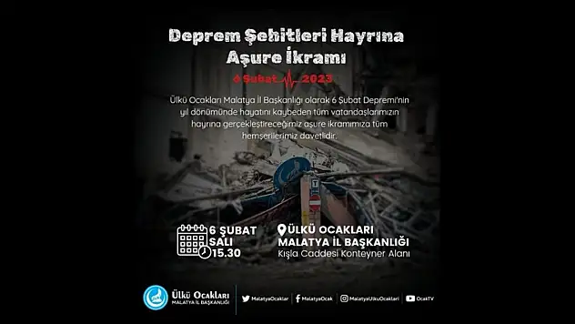 Ülkü Ocakları Deprem Şehitleri Hayrına Kur’an-ı Kerim Tilaveti ve Aşure Programı Düzenleyecek