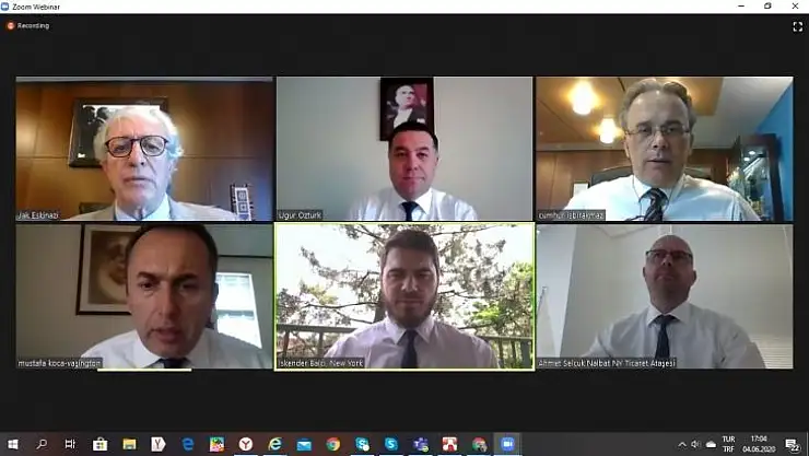 Türkiye'nin Vaşington Ticaret Baş Müşaviri Mustafa Koca, Vaşington Ticaret Müşaviri Selman Kurt, Chicago Ticaret Ataşesi Uğur Öztürk, New York Ticaret Ataşeleri Ahmet Nalbant ve İskender Balcı Amerika'da Covid-19'un etkileri ile ilgili bilgileri paylaştılar.