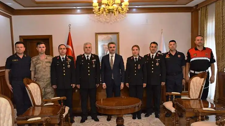 İl Jandarma Komutanı Jandarma Albay Necmi İnce, İl Jandarma Komutan Yardımcısı J. Alb. Süleyman Erdal ve Jandarma personeli Jandarma Teşkilatının Kuruluşunun 180. Yıldönümü münasebeti ile Vali Aydın Baruş’u makamında ziyaret etti.