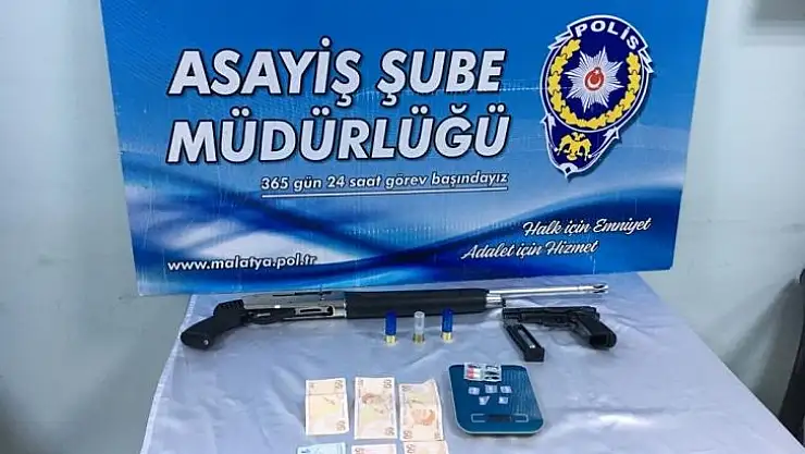 B. D. isimli şahsın yapılan üst aramasında 5 adet uyuşturucu ve uyarıcı hap, hassas terazi, 1 adet gaz tabancası ele geçirilmiş, daha sonra şahısın aracı kontrol edildiğinde içerisinde 1 adet pompalı tüfek ve tüfeğe basılı vaziyette 3 adet dolu kartuş ele geçirildiği,
