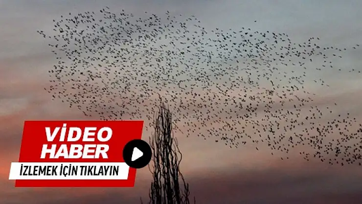 Kars'ın Sarıkamış ilçesinde, gün batımıyla yuvalarına dönen kuşların dansı kameraya yansıdı.