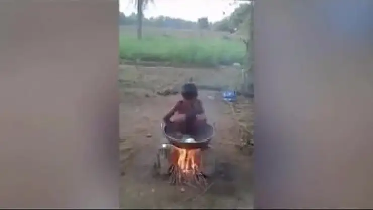 Malezya'da bir köyde sıcak su ile duş almak isteyen çocuk, altında ateş yanan kazanın içindeki suyla yıkandı. Dumanların yükseldiği suyla duş alan çocuğun ilginç anları böyle görüntülendi.