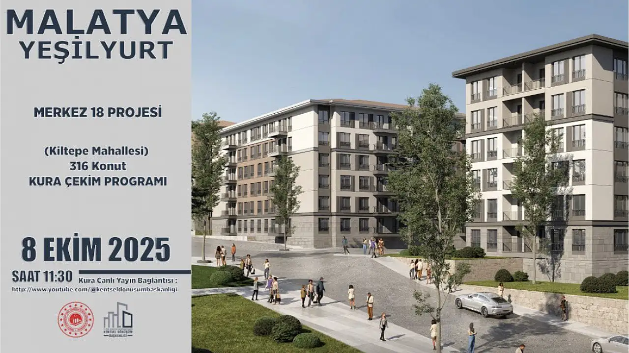 Kentsel Dönüşüm Başkanlığı, Malatya'da tamamlanan iki projedeki toplam 535 konut için hak sahipliği kura çekiminin 8 Ekim 2025 Çarşamba günü yapılacağını duyurdu.