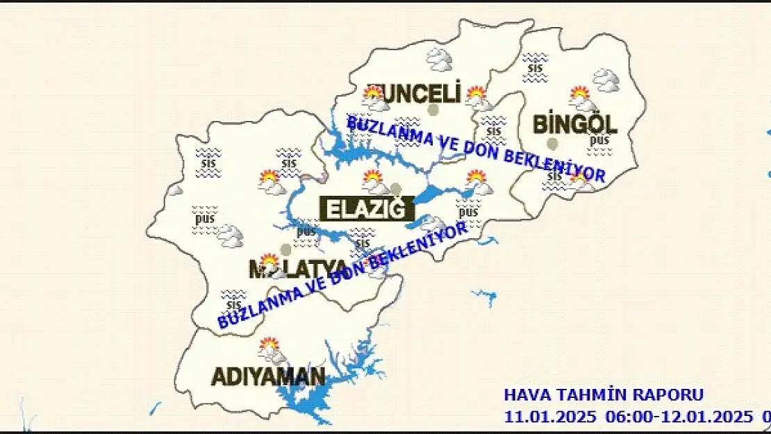 Bölgemiz genelinde havanın parçalı ve çok bulutlu, gece ve sabah saatlerinde buzlanma ve don olayı ile birlikte yer yer sis ve pus hadisesinin görüleceği,