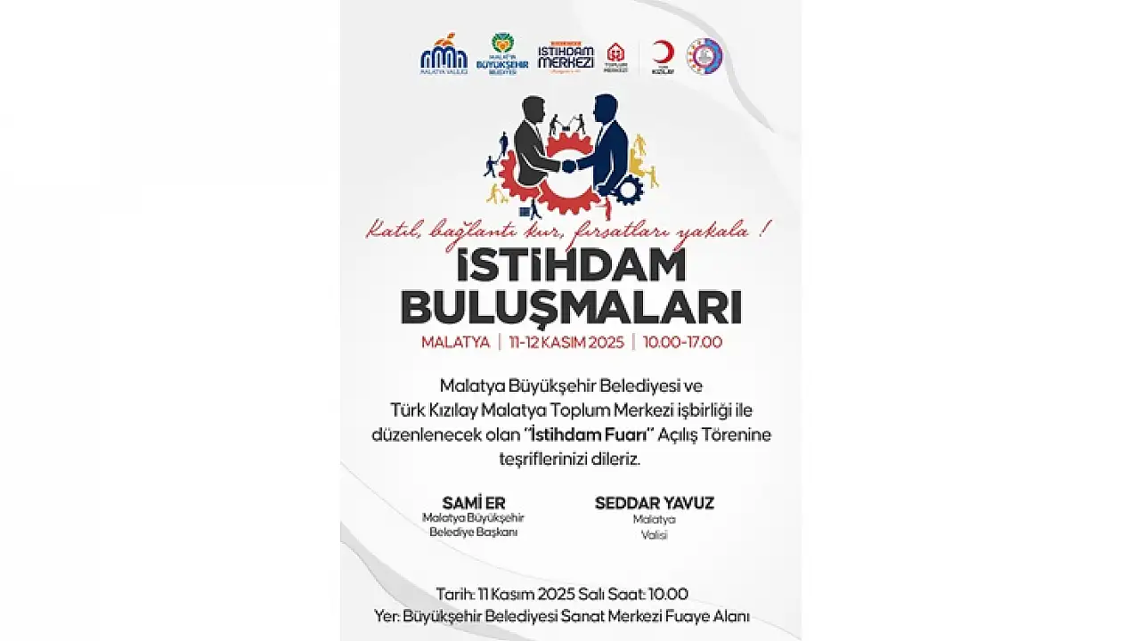 Yerel istihdamı güçlendirmek, iş arayanlarla işverenleri aynı çatı altında buluşturmak ve Malatya’nın iş gücü potansiyelini harekete geçirmek için düzenlenen “İstihdam Buluşmaları Malatya” başlıyor.