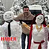 Karın yoğunluğu ve yağışın görsel güzelliğinden ilham alan esnaflar, kardan kadın ve kardan erkeği yalnızca yapmakla kalmadı, ikisi için temsili bir düğün töreni de düzenledi. Kardan çifte takılar takıldı, çevredeki esnaflar da bu eğlenceli ana eşlik etti.