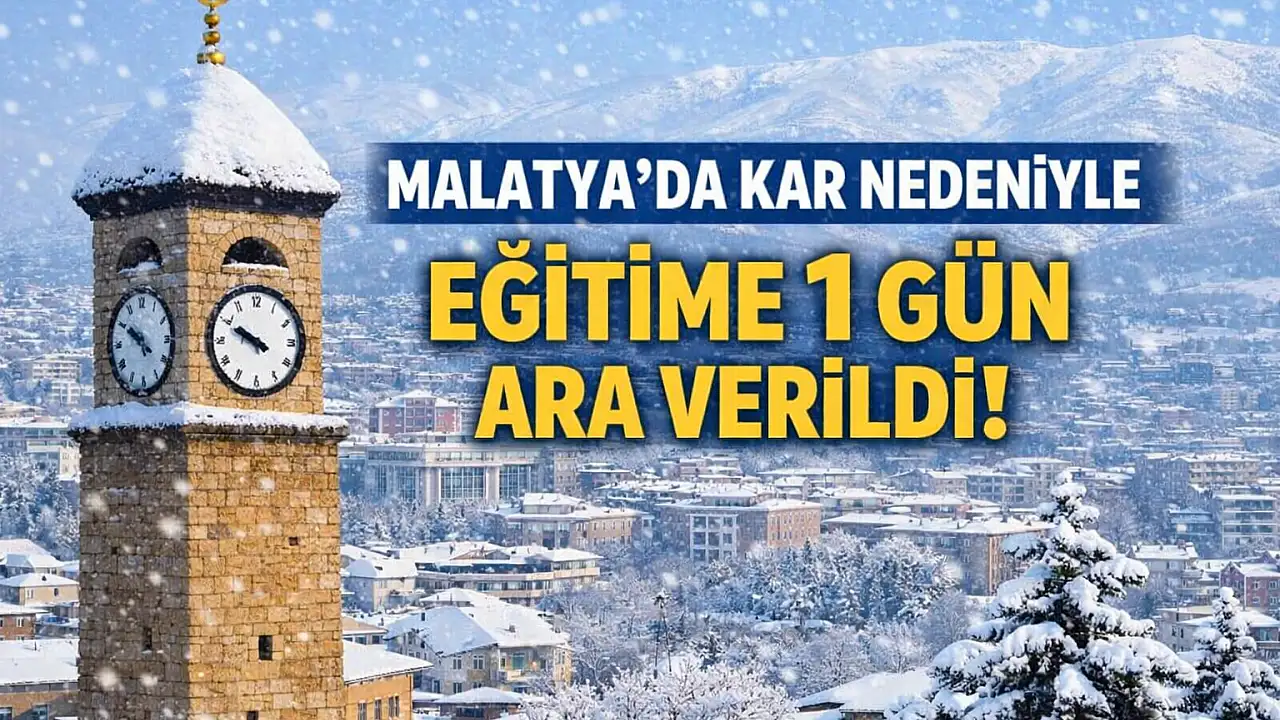 Yoğun kar yağışı ve don riski nedeniyle Malatya genelinde 2 Ocak Cuma günü resmi ve özel tüm eğitim kurumlarında eğitim-öğretime ara verildi. Bazı kamu personelleri ise idari izinli sayılacak.