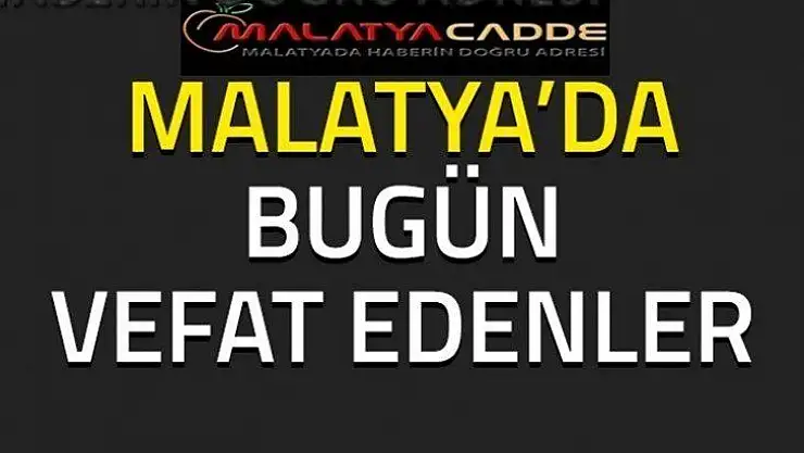 Malatya Büyükşehir Belediyesi, Şehir Mezarlığı Müdürlüğünden verilen bilgilere göre, Malatya'da bugün 13 kişi vefat etti.