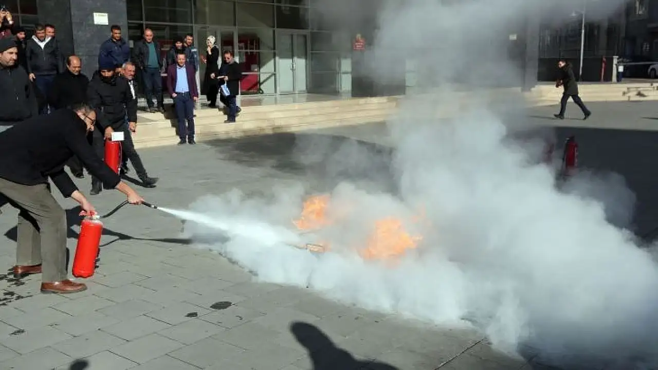 Seminerin ardından, uygulamalı olarak yangın söndürme tatbikatına geçildi. Kültür Merkezi bahçesinde; olası bir yangına karşı söndürme teknikleri gösterildi. Personele, yangına zamanında ve nasıl müdahale edebileceği hakkında uygulama yaptırıldı.