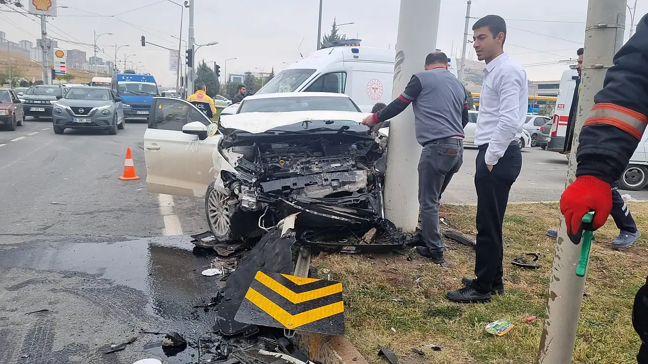 TÜVTÜRK Kavşağı'nda Kaza: Araç Trambüs Direğine Çarptı