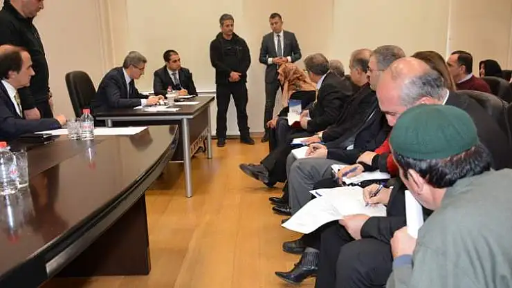 Valilik Toplantı Salonunda, Vali Aydın Baruş başkanlığında gerçekleştirilen toplantıya Vali Yardımcısı Mehmet Güder, ilgili kurum müdürleri ve müracaat sahibi vatandaşlar katıldı.