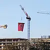 Operatör, vinç ucuna astığı dev Türk bayrağını akşam saatlerinde gökyüzünde dalgalandırarak kutlamaya renk kattı. Görüntüyü izleyen vatandaşlar, operatörün bu davranışına alkışlarla karşılık verdi.