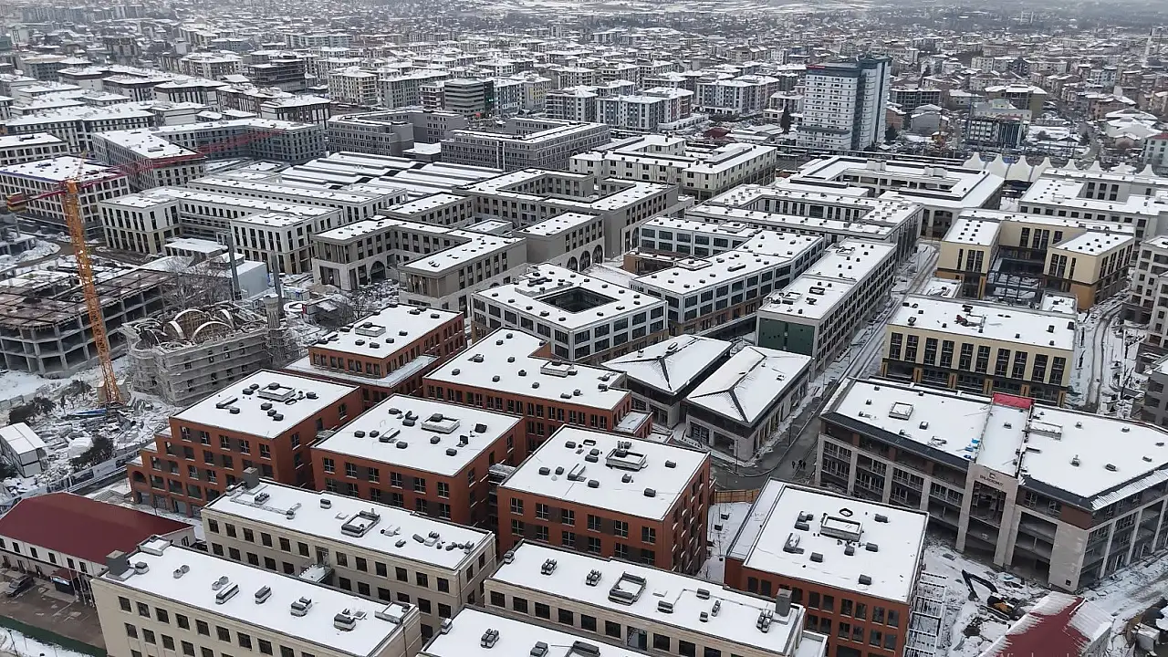 Malatya’da etkili olan kar yağışı, kentin yeni çarşı merkezini beyaza bürüdü. 6 Şubat Kahramanmaraş merkezli depremlerde tamamen yıkılan eski çarşının yerine inşa edilen yeni çarşı, karla kaplanan görüntüsüyle drone kamerasına yansıdı.